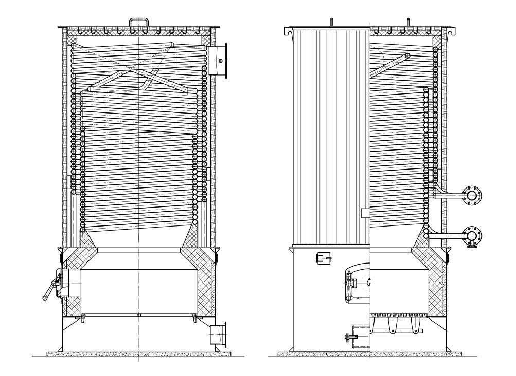 鍋爐燃(rán)燒室由立式大直徑圓盤管組成,盤管結構有串聯或(huò)並聯,燃(rán)料燃燒(shāo)空間足,燃燒有效,熱效率高。